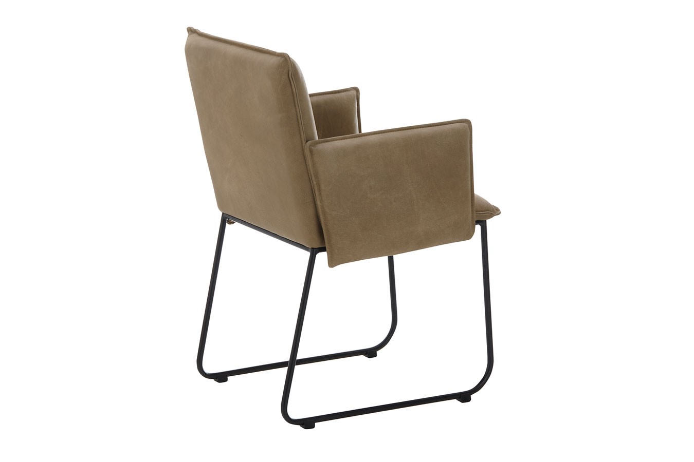 Investieren Sie in zeitlose Eleganz und herausragenden Komfort – mit unserem Armlehnstuhl aus Stoff in braun und Kufenfüßen aus schwarzem Metall schaffen Sie einen Ort des Rückzugs und der Stilvolligkeit in Ihrem Zuhause.