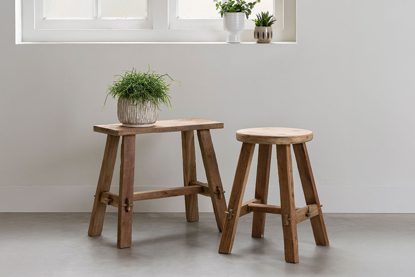 Hocker, Teakholz, recyclet, rustikale Oberfläche