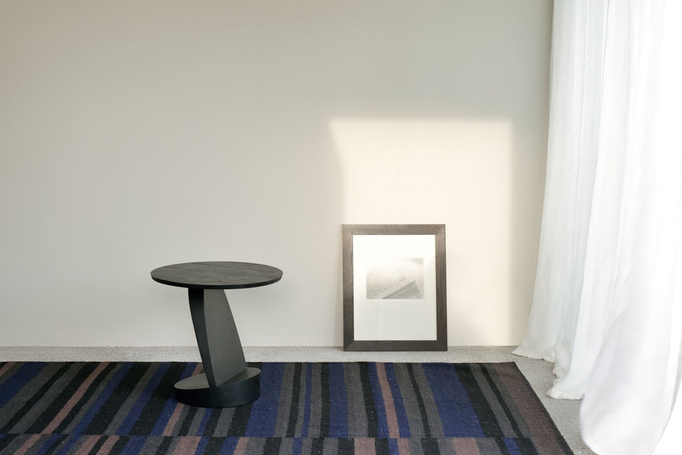 Dieser moderne Beisteller wird nicht nur zum Hingucker Ihres Wohnzimmers, sondern passt zu Ihrer schlichten Einrichtung in unifarbenen Tönen. Obwohl er von Weitem den Eindruck erweckt, als bestehe er aus Metall, handelt es sich bei dem Material tatsächlich um massives Teakholz. Der Tisch mit Durchmesser von 52cm und Höhe von 49cm ist wie der schiefe Turm von Pisa, da er leicht zur Seite geneigt ist. Der Tisch wurde schwarz lackiert und gebeizt. Kombinieren Sie Oblic mit Möbeln derselben Holzart und von Ethnicraft, um einen modernen Design-Look zu erhalten.