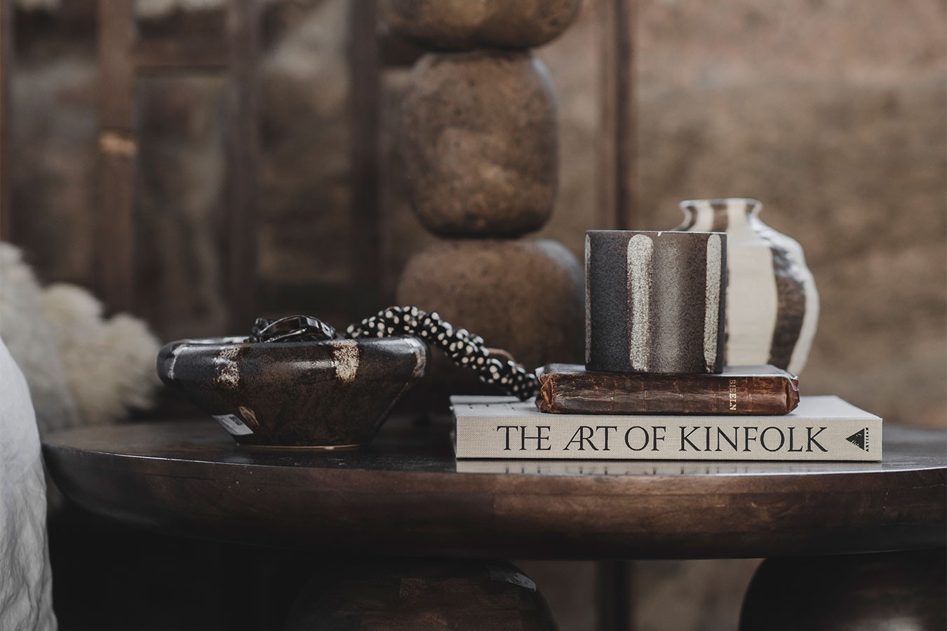Die Schale Romi ist ein dekoratives Stück, das rustikalen Charme und elegante Schönheit ausstrahlt. Mit ihren braun-weißen Streifen und der weichen, massiv geformten Schale ist sie ein wunderschönes Kunstwerk, das jeden Raum aufwertet. Jede Schale ist handbemalt mit einer reaktiven Glasur, wodurch jedes Stück durch die variierenden Farben und Oberflächen ein Unikat ist. Die satte Tiefe und Leuchtkraft der Glasur verleihen der Schale einen authentischen, handgefertigten Charakter. Mit ihrer rustikalen Oberfläche und dem sanften Design ist Remi mehr als nur eine Schale – sie ist ein Wohnaccessoire, das Ihrem Zuhause Wärme und Charakter verleiht. Perfekt als Dekoration auf dem Tisch, im Regal oder als Teil Ihrer Sammlung schöner Objekte. Die Schale ist nicht lebensmittelecht und eignet sich daher ideal als stilvolles Dekorationsobjekt zum Präsentieren kleiner Schmuckstücke oder um einen schönen visuellen Effekt auf Regalen oder Tischen zu erzielen. Lassen Sie Remi eine einzigartige und künstlerische Bereicherung für Ihr Zuhause sein und bringen Sie Authentizität und eine lebendige Atmosphäre in Ihre Räume.