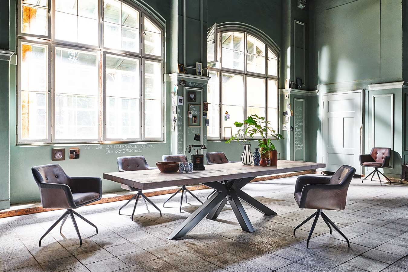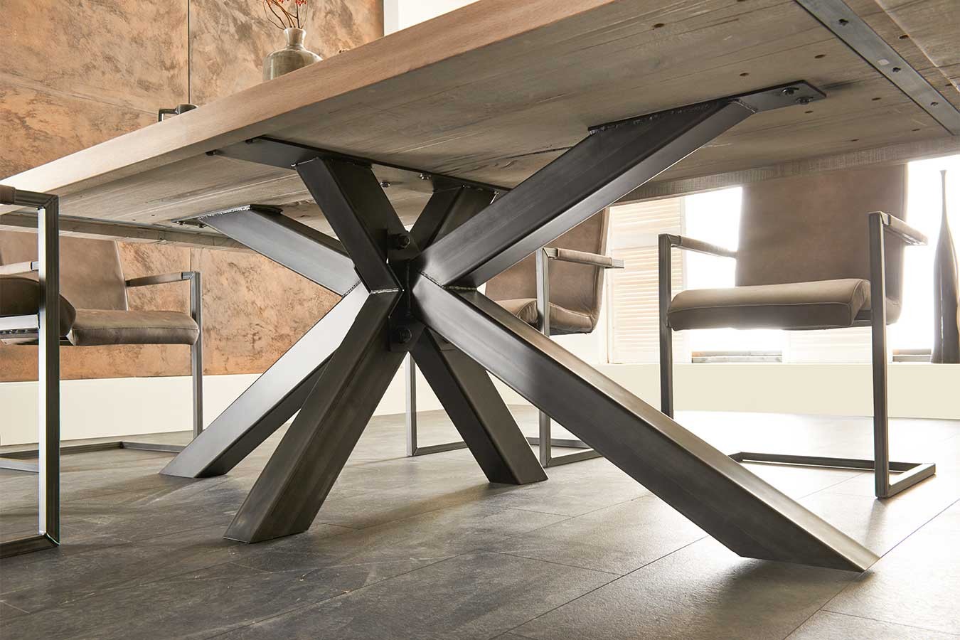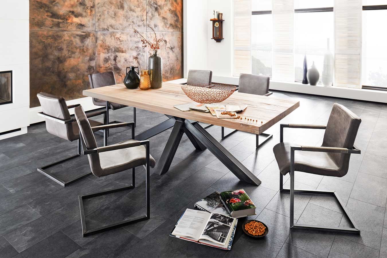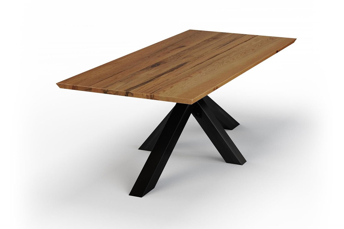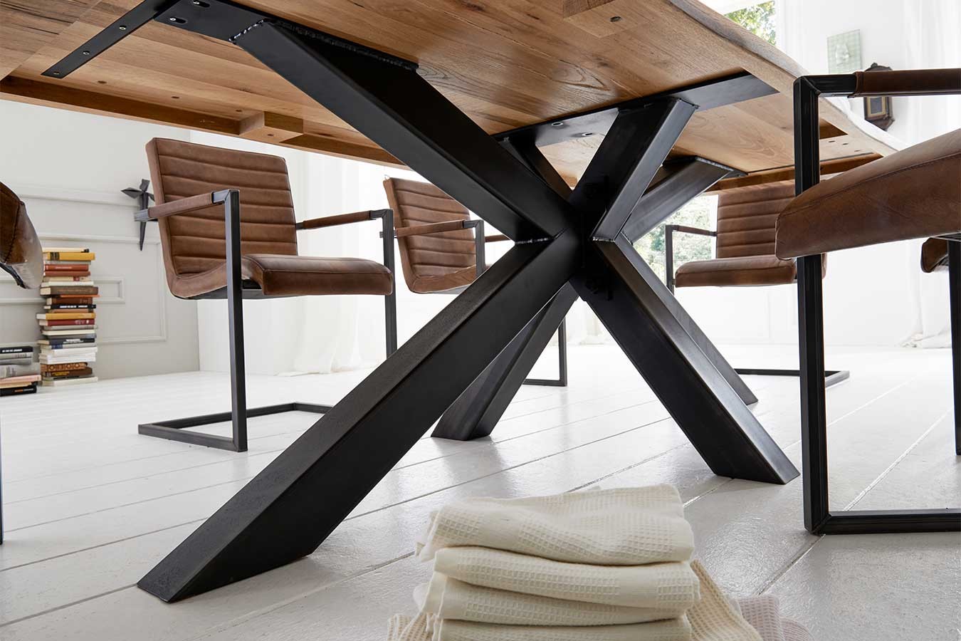 Entdecken Sie die zeitlose Eleganz und die handwerkliche Perfektion unseres Esstisches mit rustikalem Eichenholz, schweizer Kante und schwarzem Mittelfuß. Ein Stück Schweizer Präzision für Ihr Zuhause!