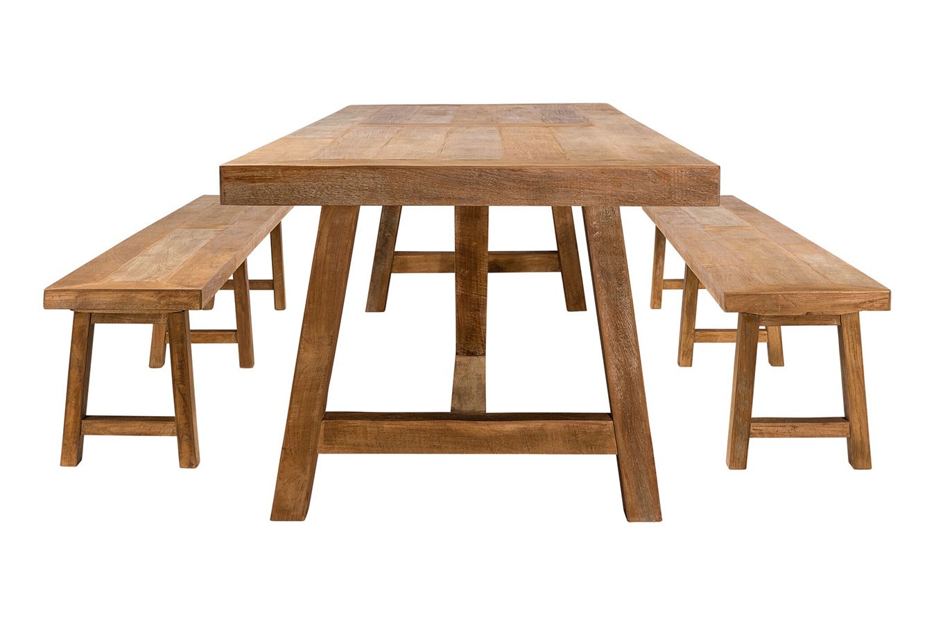 Verleihen Sie Ihrem Essbereich eine subtile Mischung aus mediterranem Flair und rustikaler Eleganz – mit unserem Esstisch aus recyceltem Teakholz in Naturfarbe.
