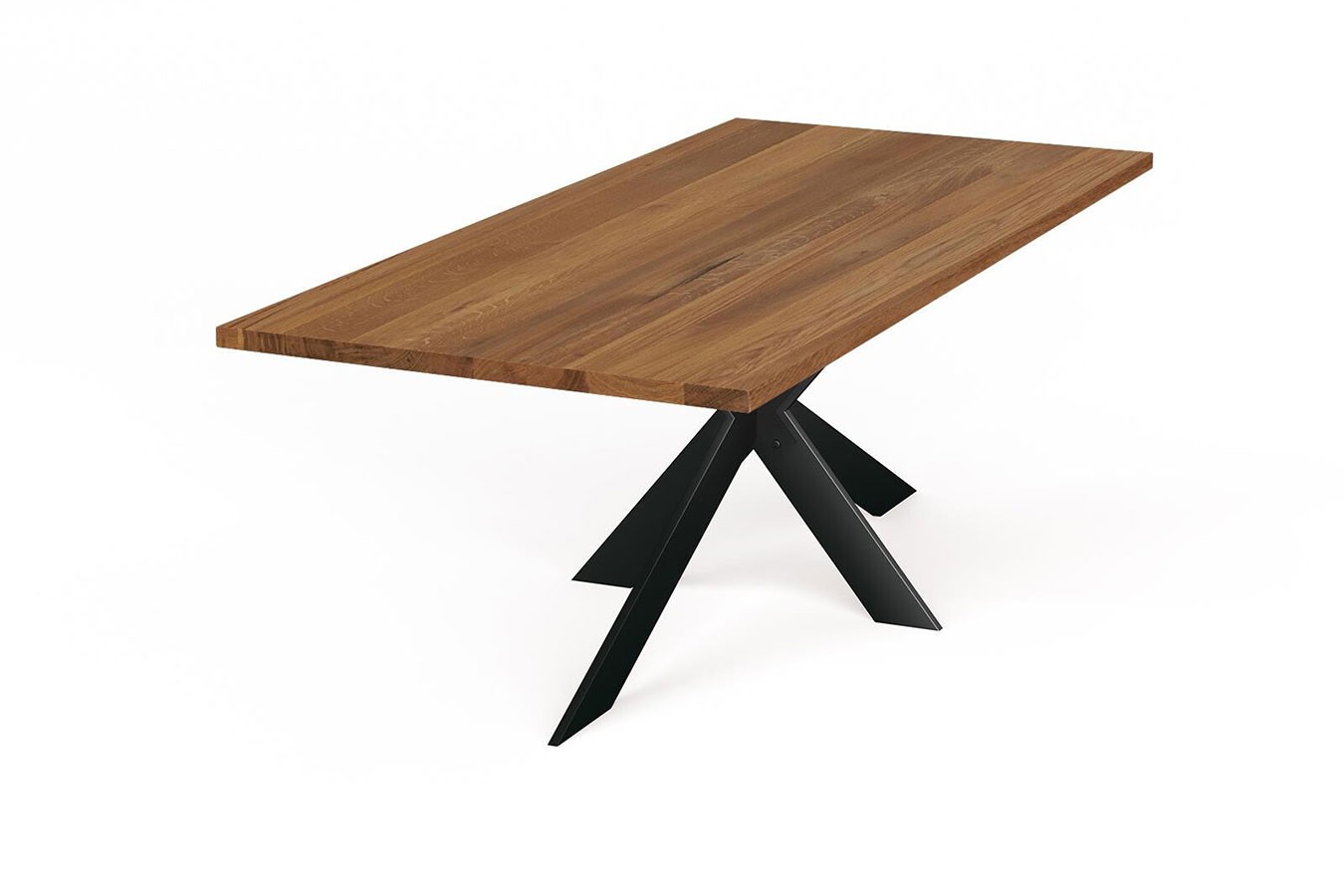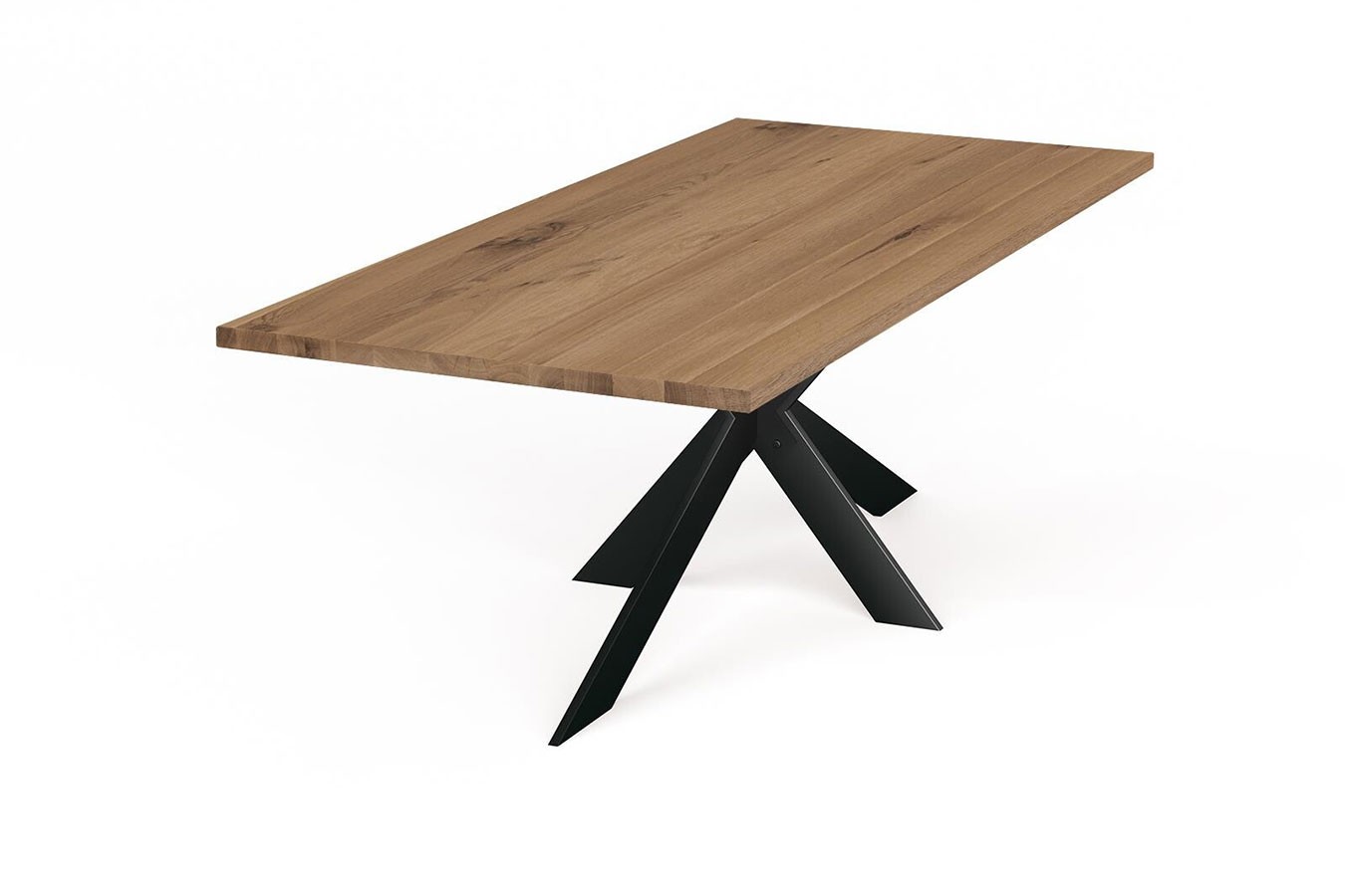Küchentisch, rechteckig, 100% Massivholz, Wildeiche, gerade Kante, Mittelfuß aus Stahl in schwarz, verschiedene Größen verfügbar