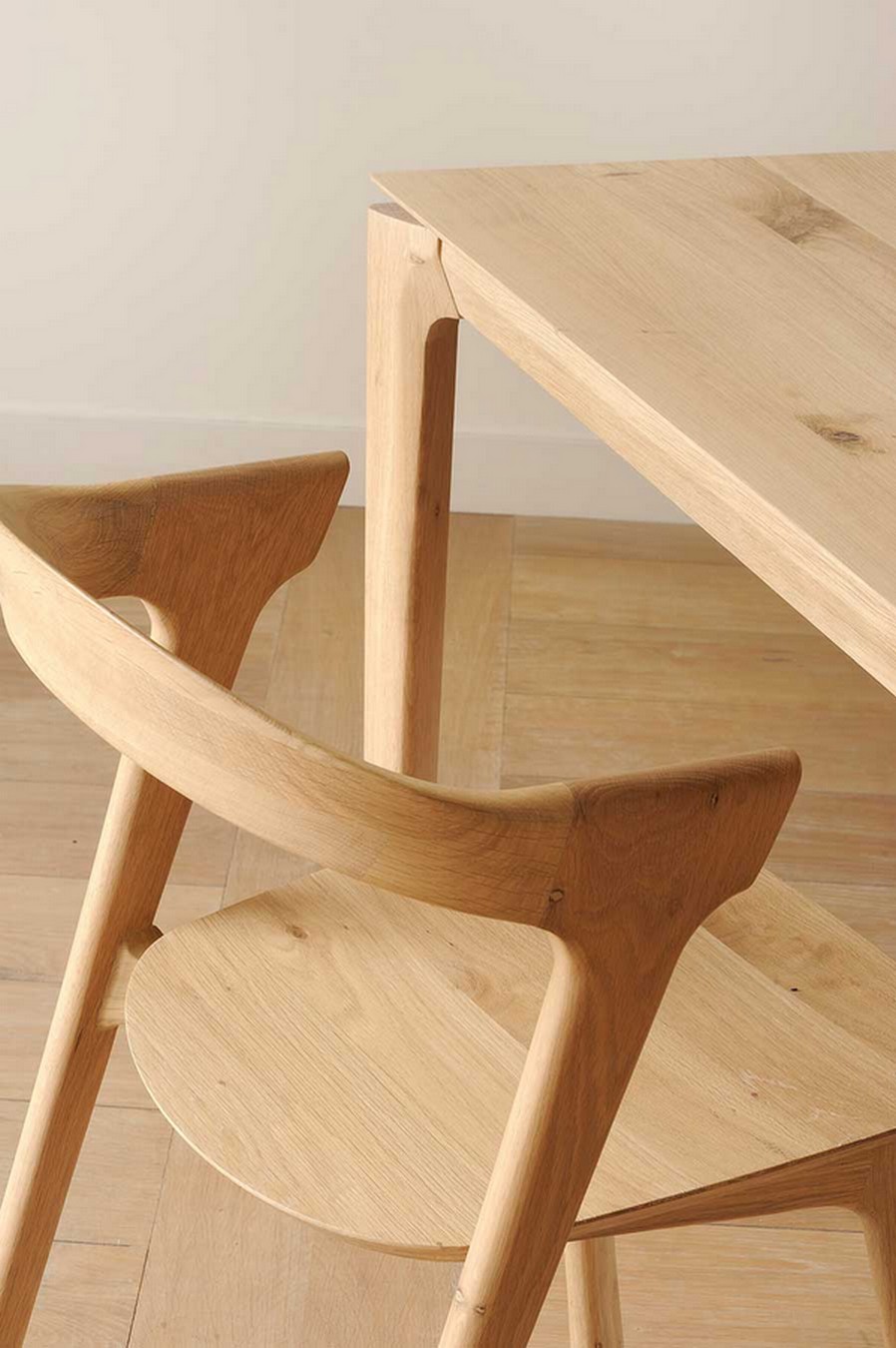 Der Bok Esstisch, entworfen von Alain van Havre, ist seit Jahren eines unserer bekanntesten Designs. Sein skulpturaler Charakter ist das Ergebnis der Suche nach einem Gleichgewicht zwischen Funktionalität und Stabilität.Unser Holztisch besteht aus dem Holz der Eiche und hat eine Breite von 140cm, eine Tiefe von 80cm und eine Höhe von 76cm sowie eine Stärke von 2cm. Das komplett aus Eichenholz bestehende Produkt kommt in seiner Naturfarbe daher, so dass die Maserung perfekt zu erkennen ist. Die Oberfläche wurde geölt, um das Holz zu schützen. Getragen wird der Tisch für die Küche oder Esszimmer von vier Massivholzbeinen. Durch sein simples, natürliches Aussehen passt das Möbelstück in Milieus im Landhaus- oder auch skandinavischen Stil.