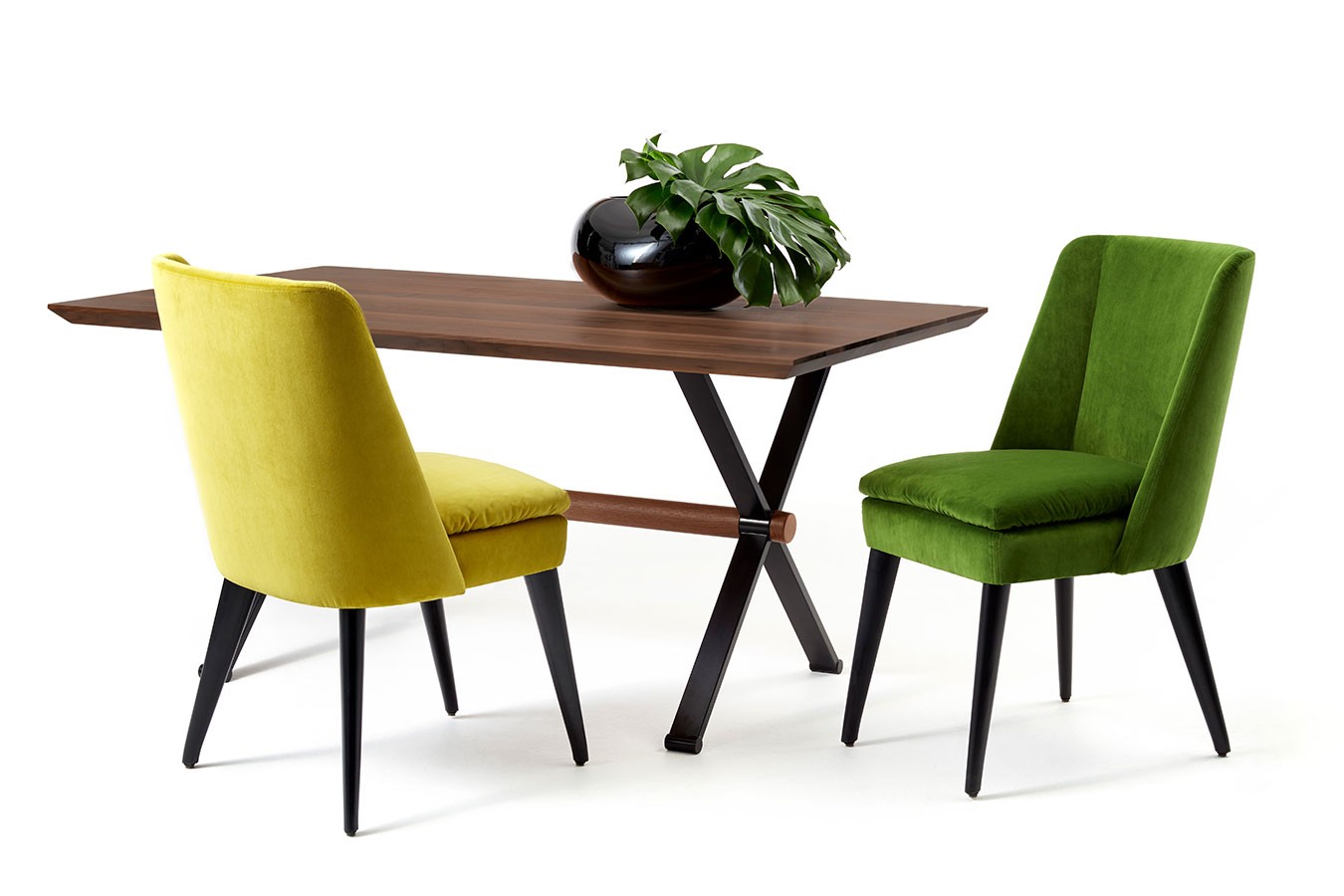 Die vier Buchefüße, kunstvoll in schwarz lackiert, verleihen diesem Stuhl eine moderne Ästhetik und sorgen gleichzeitig für Stabilität und Langlebigkeit. Ihre elegante Formgebung fügt sich nahtlos in das Gesamtbild ein und unterstreicht die Schönheit des grünen Stoffbezugs.