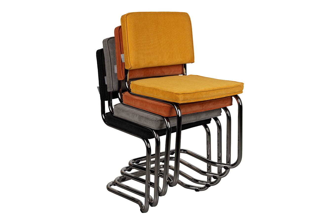 Der Bezug aus strapazierfähigem, geripptem Stoff bringt Struktur ins Design und sorgt für eine moderne, lebendige Oberfläche. Besonders praktisch: Der Stuhl ist stapelbar und eignet sich damit ideal für flexible Wohnsituationen, Essbereiche oder auch den Einsatz im Objektbereich.