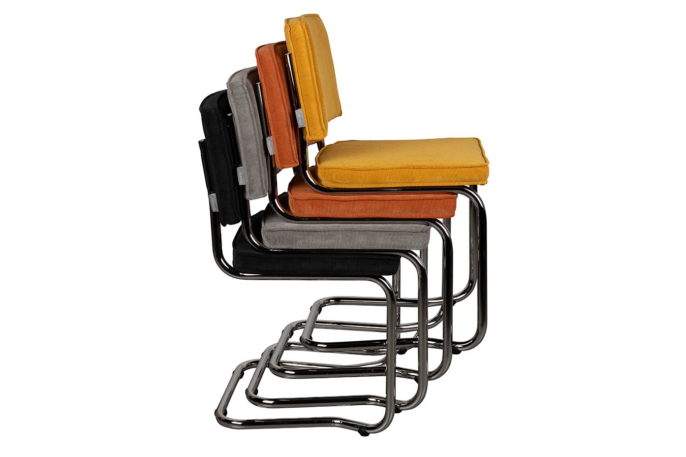 Der Bezug aus strapazierfähigem, geripptem Stoff bringt Struktur ins Design und sorgt für eine moderne, lebendige Oberfläche. Besonders praktisch: Der Stuhl ist stapelbar und eignet sich damit ideal für flexible Wohnsituationen, Essbereiche oder auch den Einsatz im Objektbereich.