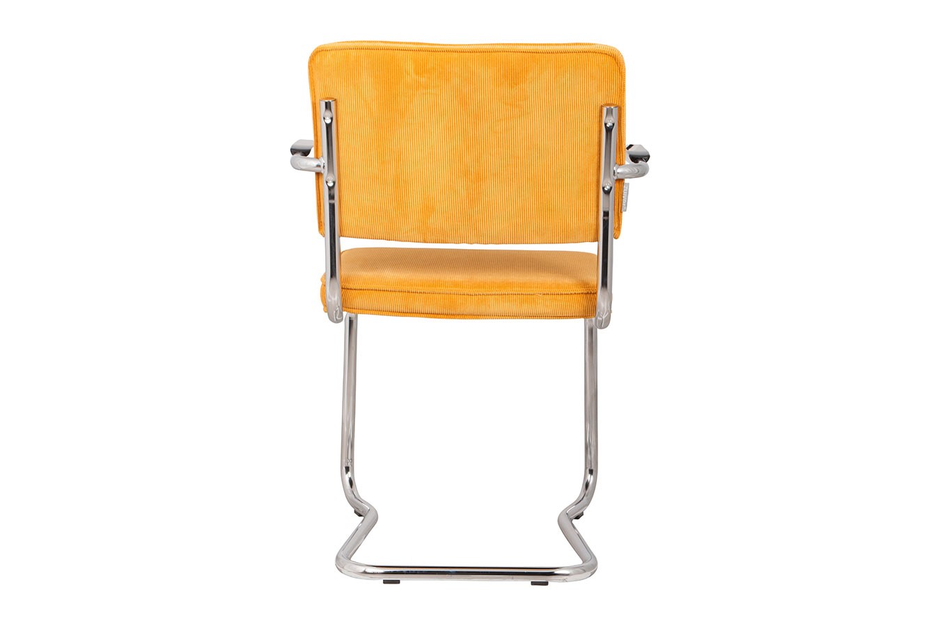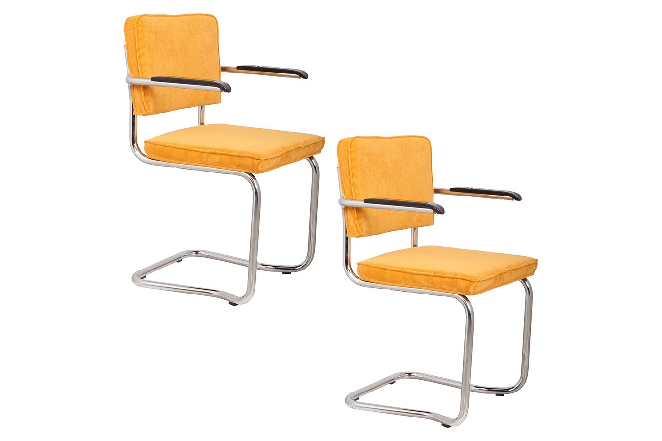 Esszimmerstuhl, mit angdeuteten Armlehnen, Retro Look, Bezug Stoff Cord, gelb