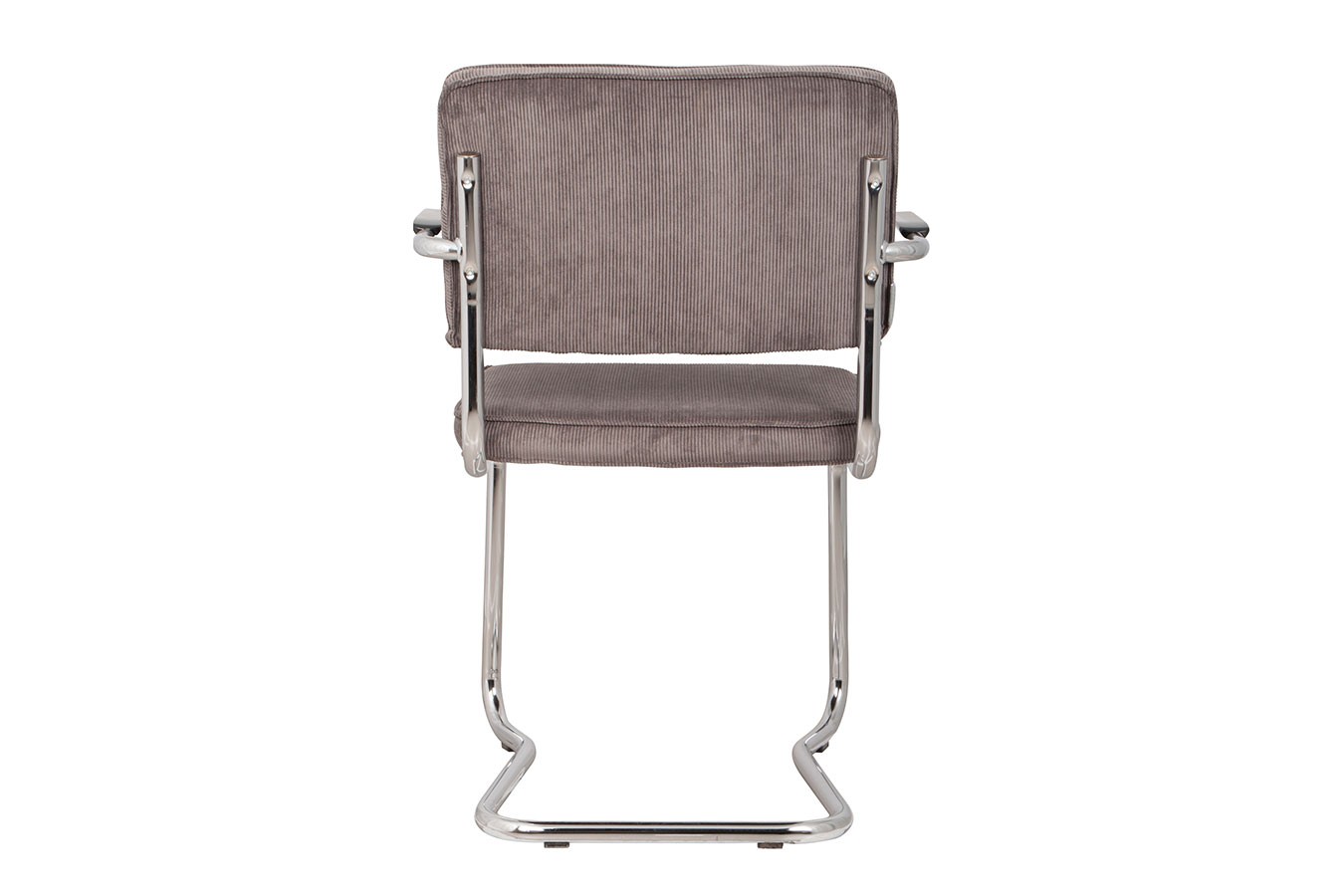 Das charakteristische Freischwinger-Gestell aus gebogenem Metall verleiht dem Stuhl eine leichte, ruhige Wirkung und sorgt gleichzeitig für eine dezente Federung beim Sitzen. Der strapazierfähige, gerippte Stoffbezug bringt Struktur ins Design und ist auf den täglichen Gebrauch ausgelegt.