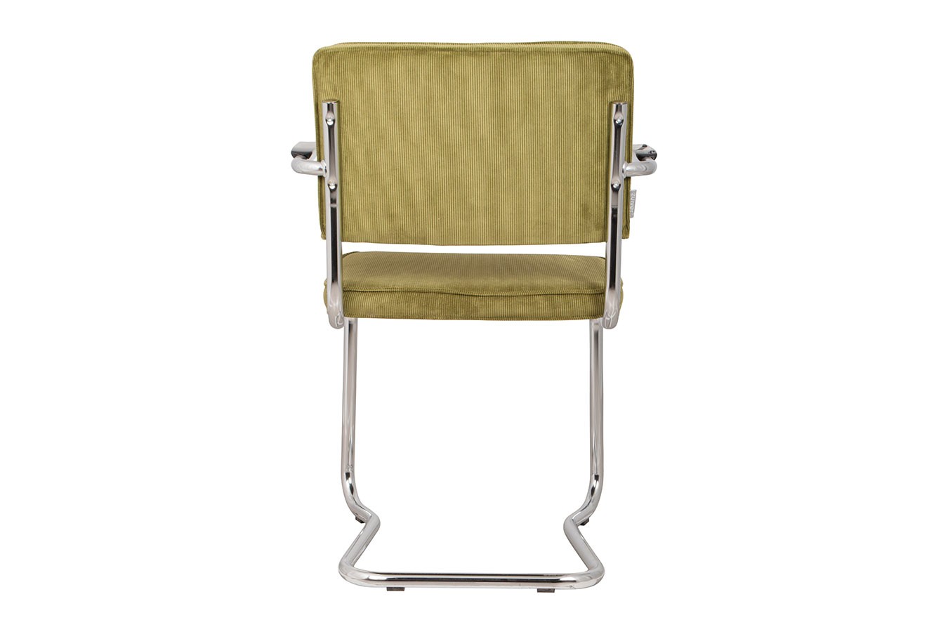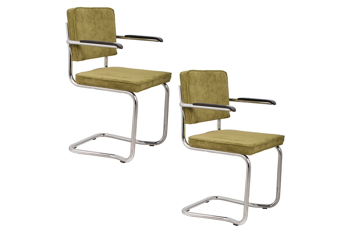 Esszimmerstuhl, mit angedeuteten Armlehnen, Retro Style, Bezug Cord, grün