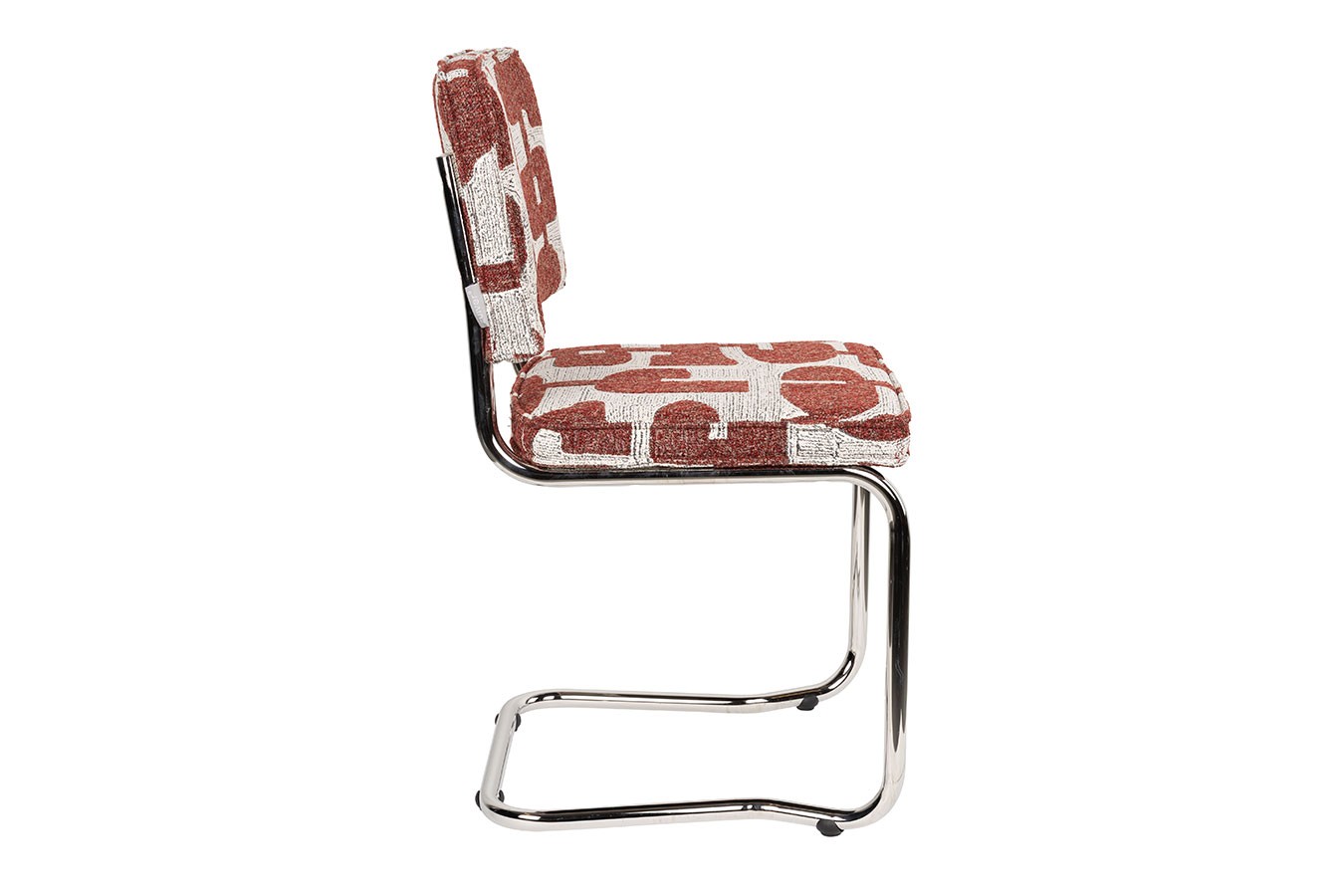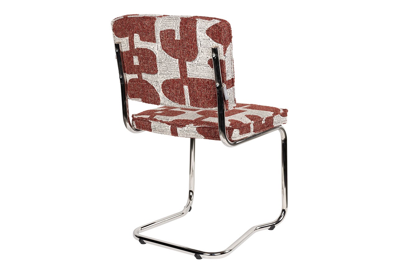 Das verchromte Freischwinger-Gestell bringt Ruhe in die Gestaltung und sorgt gleichzeitig für eine leichte, schwebende Wirkung. Die dezente Federung erhöht den Sitzkomfort und macht den Stuhl auch bei längerer Nutzung angenehm.