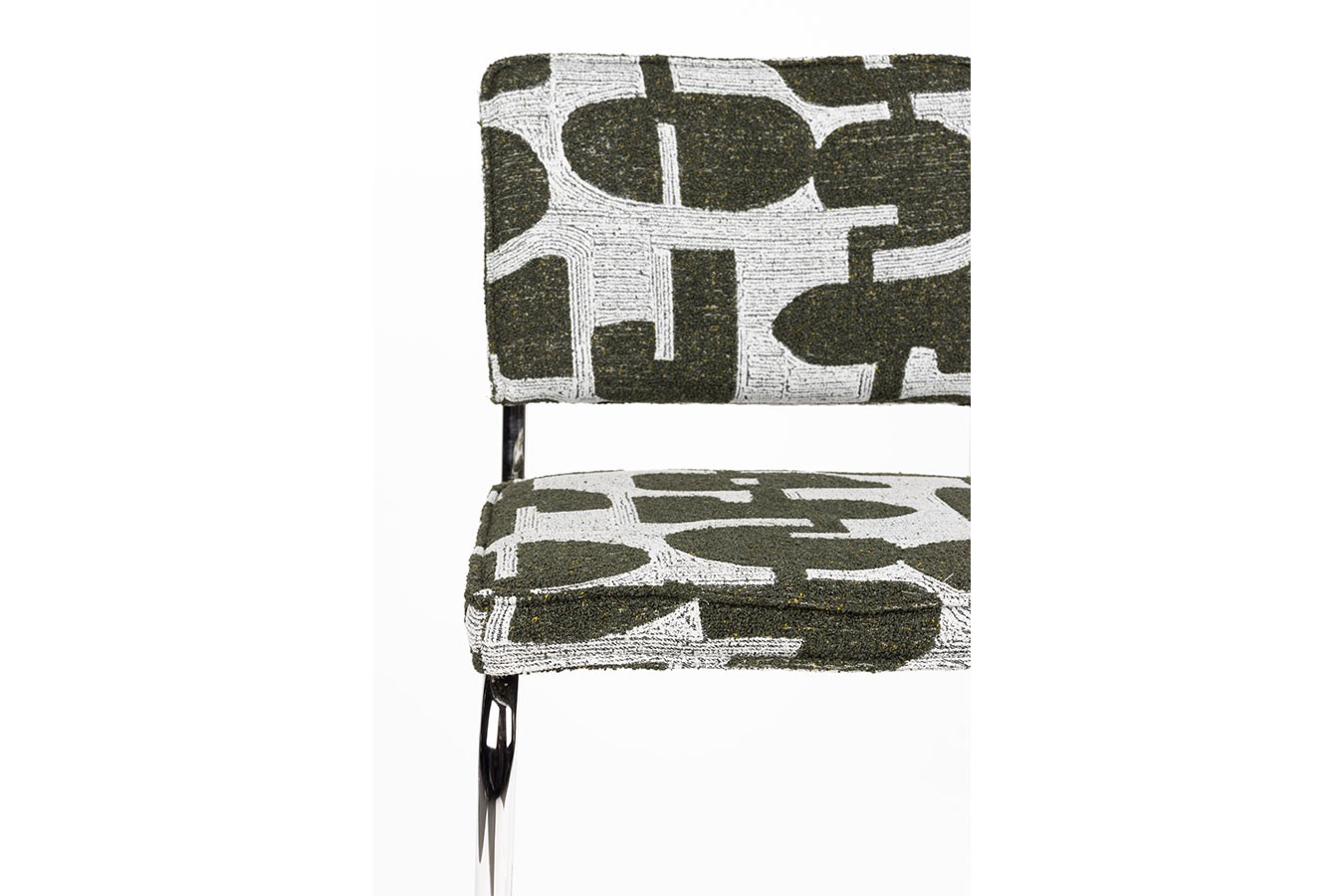 Der King Stuhl in der Retro-Variante setzt bewusst auf visuelle Präsenz. Das großflächige Muster in Kombination mit der strukturierten Oberfläche verleiht dem Stuhl eine lebendige, charakterstarke Ausstrahlung und macht ihn zum Blickpunkt im Raum.Die gepolsterte Sitzfläche und die Rückenlehne sorgen für ein angenehmes Sitzgefühl und bieten eine ausgewogene Unterstützung im Alltag. Damit eignet sich der Stuhl sowohl für den Essbereich als auch für Räume, in denen Design gezielt Akzente setzen soll.