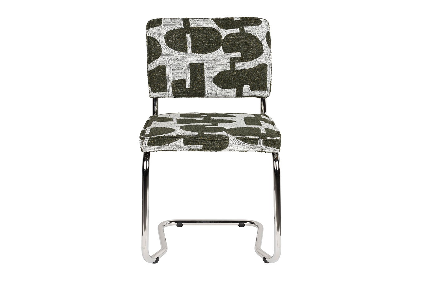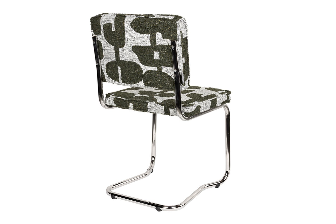 Das verchromte Freischwinger-Gestell bringt Ruhe in die Gestaltung und sorgt gleichzeitig für eine leichte, schwebende Wirkung. Die dezente Federung erhöht den Sitzkomfort und macht den Stuhl auch bei längerer Nutzung angenehm.