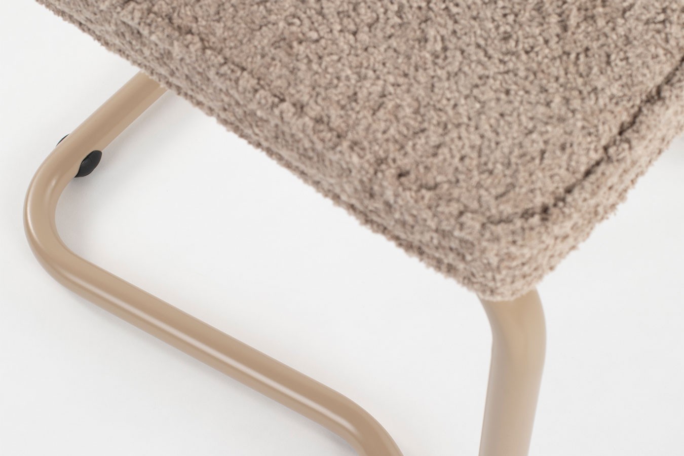 Der King Stuhl Soft interpretiert das klassische Freischwinger-Design in einer weicheren, wohnlichen Ausführung. Die gepolsterte Sitzfläche und Rückenlehne sind mit einem strukturierten Bouclé-Stoff bezogen, der dem Stuhl eine angenehme Haptik und eine ruhige, moderne Ausstrahlung verleiht.Das charakteristische Freischwinger-Gestell sorgt für eine leichte, schwebende Wirkung und bietet gleichzeitig eine dezente Federung beim Sitzen. In dieser Variante ist das Gestell farblich auf den Bezug abgestimmt, wodurch ein stimmiges Gesamtbild entsteht.