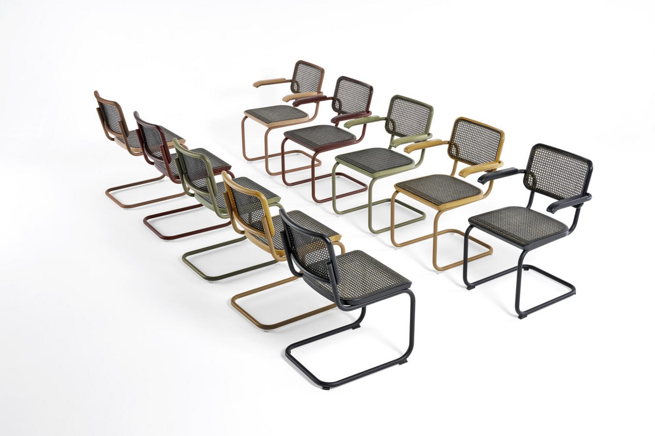 Der Freischwinger S 32 gehört zu den vielseitigsten Stahlrohrmöbeln, die es gibt. Er fügt sich harmonisch in unterschiedlichste gestalterische Umgebungen ein – sei es in einem modernen, puristischen Ambiente oder in einem vielseitigen Mix aus verschiedenen Stilen und Epochen. Sowohl der Freischwinger S 32 als auch seine Variante mit Armlehnen, der S 64, zählen zu den bekanntesten Klassikern im Bereich der Stahlrohrmöbel. Ihr Erfolg beruht auf der faszinierenden Verbindung von Tradition und Innovation: Die lange Geschichte von Thonet in der Herstellung von Bugholzmöbeln mit charakteristischem Wiener Geflecht trifft hier auf den revolutionären Einsatz von Stahlrohr. Während Sitz und Rückenlehne aus Massivholz mit Rohrgeflecht die Tradition verkörpern, repräsentiert das Gestell die Moderne und Zukunft. Diese Vielseitigkeit hat dazu beigetragen, dass sie bis heute zu den meistverkauften Freischwingern gehören. Marcel Breuer entwarf den S 32 und den S 64 während seiner Zeit in Berlin im Jahr 1928, und Thonet produziert beide Modelle seit 1930. Dank ihrer klaren Ästhetik und reduzierten Formgebung passen diese Klassiker perfekt in verschiedene Umgebungen, darunter Konferenzräume, Wartebereiche, Restaurants und Wohnräume. Das Sortiment wird durch die Drehstuhlvarianten S 64 Atelier (VDR) und die Barhocker S 32 VH erweitert.