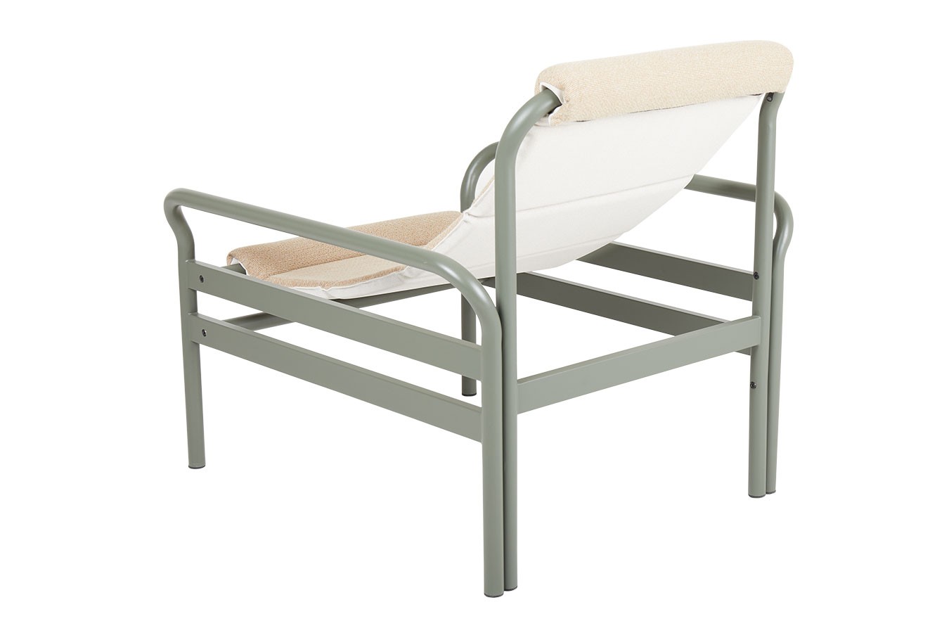 Dieser Armsessel bietet Ihnen dank seines Aluminiumrahmens einen sicheren Sitz. Die sanften Konturen sind auch an den Armlehnen und der Rückenlehne zu erkennen und verleihen ihm einen eleganten und bequemen Winkel nach außen.Die Sling-Serie präsentiert eine Form, die Aufsehen erregen wird. Ihr weiches und rundes Design fängt spielerisch die Essenz des Sommers ein. Die geschwungenen Kissen sind nicht nur eine stilvolle Ergänzung zum Rahmen, sondern bieten auch unglaublichen Sitzkomfort. Die Serie besteht aus einem Armsessel, einem Sofa und einem Couchtisch.