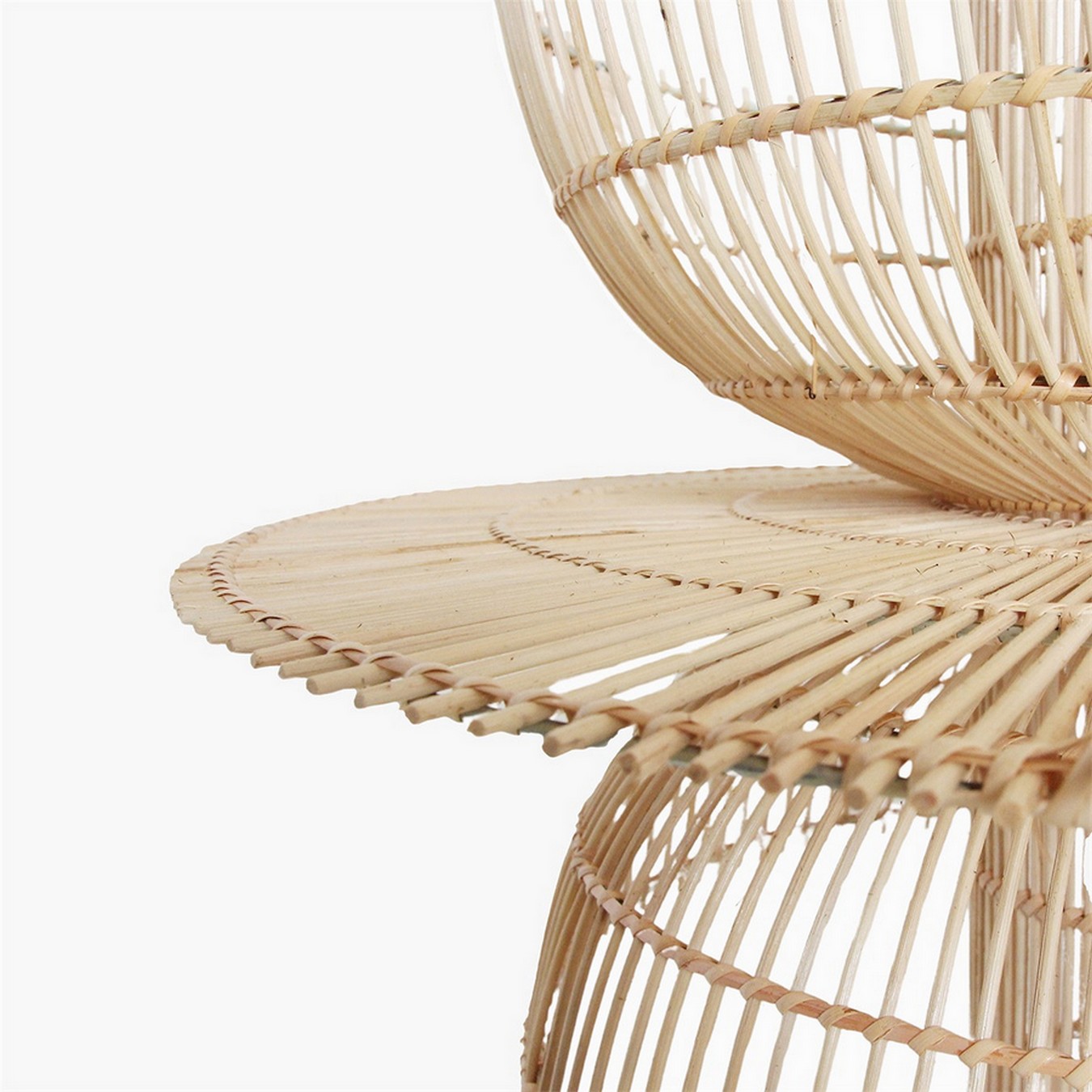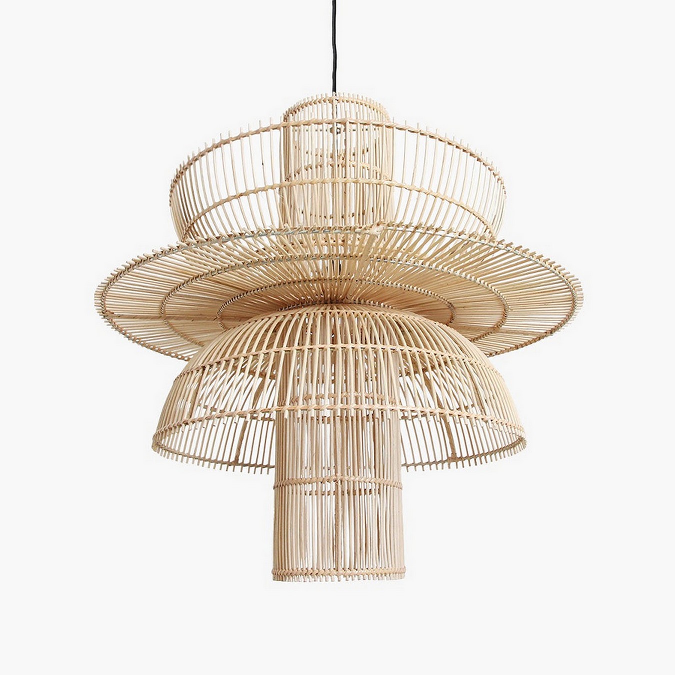 Alle unsere Boho-Lampen werden in Handarbeit aus Rattan gefertigt. Rattan ist eine Kletterpflanze, die sich an Bäumen festhält und bis zu 100 Meter lang werden kann. Die meisten Rattanarten wachsen in den tropischen Wäldern Südostasiens, davon 70 % in Indonesien. Das Flechten von Rattan zu Körben, Möbeln und Lampen ist eine Kunst, die von Generation zu Generation weitergegeben wird. Die Boho-Lampenkollektion ist von Vintage-Lampendesigns inspiriert und wurde von unseren Designern modern interpretiert. Ein stilvolles Textilkabel und eine schwarze Metall-Deckenkappe runden das Design ab.