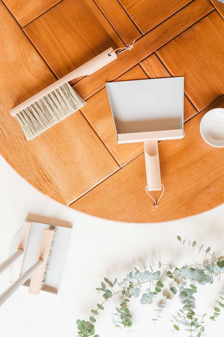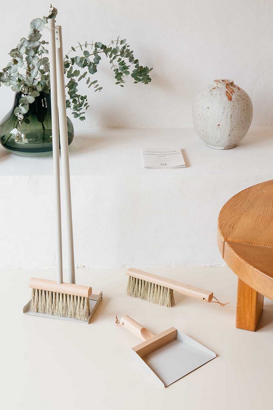 Da weiß man direkt, was man hat. In der Küche kann es schnell dreckig werden. Entweder fällt geschnippeltes Gemüse runter oder eins Ihrer Familienmitglieder ist gerade mit Keksen im Mund abgehauen und hat eine Krümelspur hinterlassen. Doch damit müssen Sie nicht leben. Dieses praktische Accessoire, nämlich ein Handfegerset aus Buchenholz und lackiertem Metall mit Rosshaar in der Bürste ist perfekt zum schnellen Saubermachen geeignet. Das Küchenaccessoire ist in jeder Küche ein Muss. Und so eine Kehrschaufel samt Feger lässt sich auch binnen Sekunden wegräumen, wenn sie nicht gerade benötigt wird. Aber unseres Wissens nach sollte das Set immer griffbereit sein.Designt und entworfen im französischen Nantesvon Mr & Mry Clynk und Andrée Jardin. Also 100% made in France. Mit praktischen Lederschlaufen zum Aufhängen.