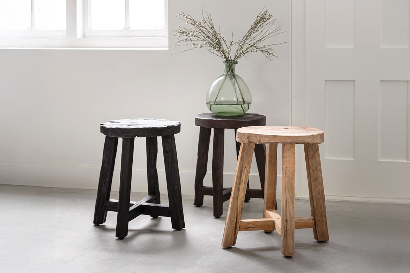 Beisteller, rund, Teakholz, recyclet, rustikal, Farbe schwarz