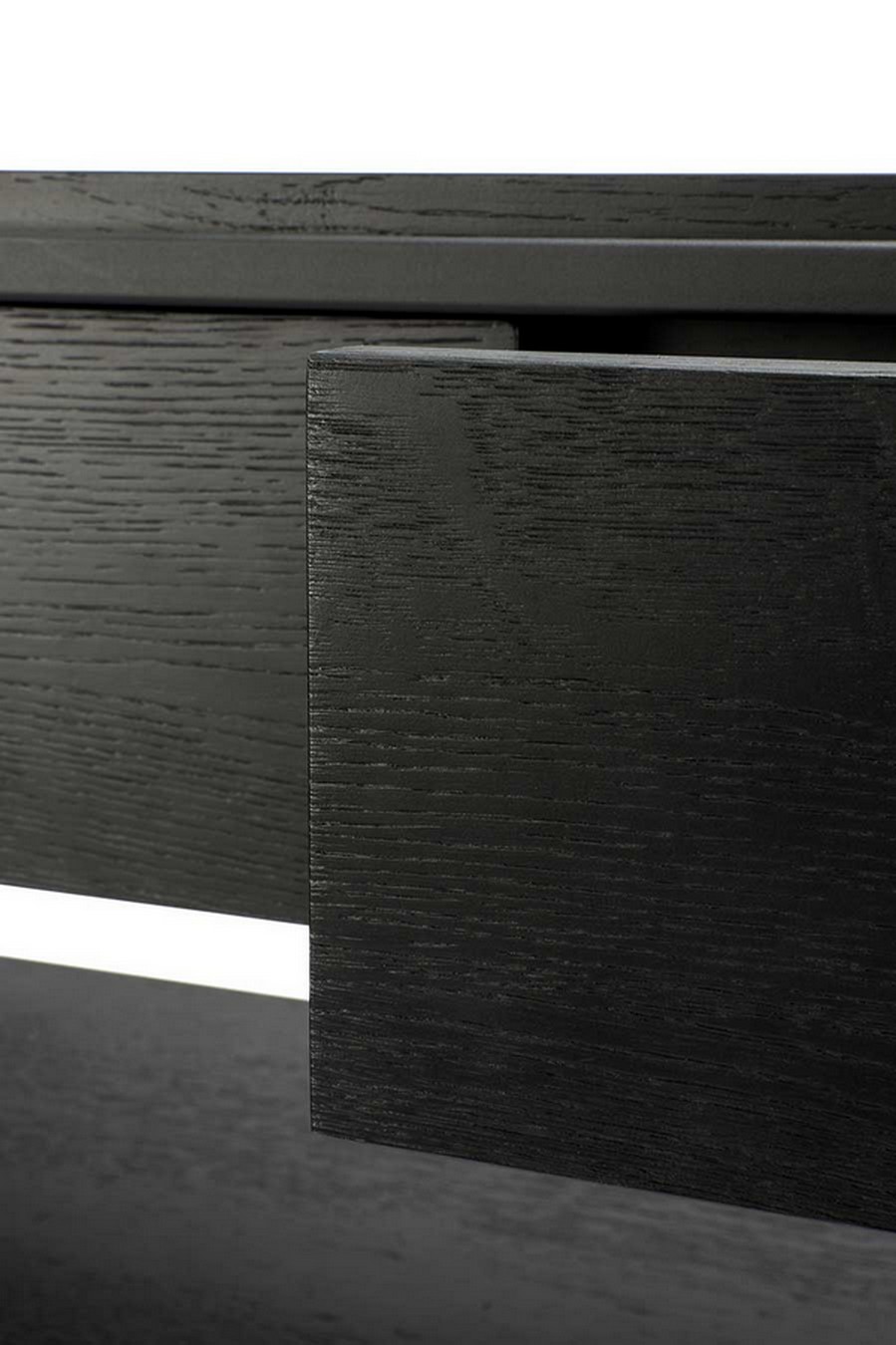 Konsole, Eichenholz massiv, Metallrahmen, 2 Schubladen, 1 Ablage, Farbe schwarz lackiert
