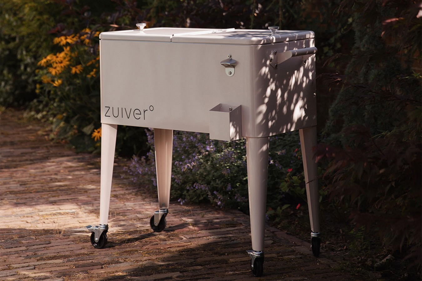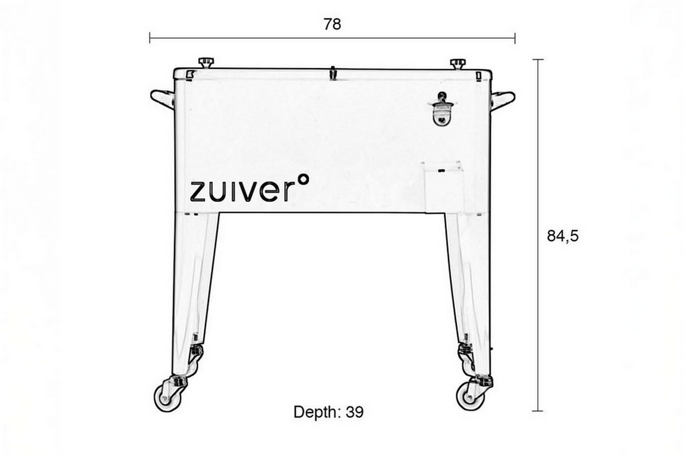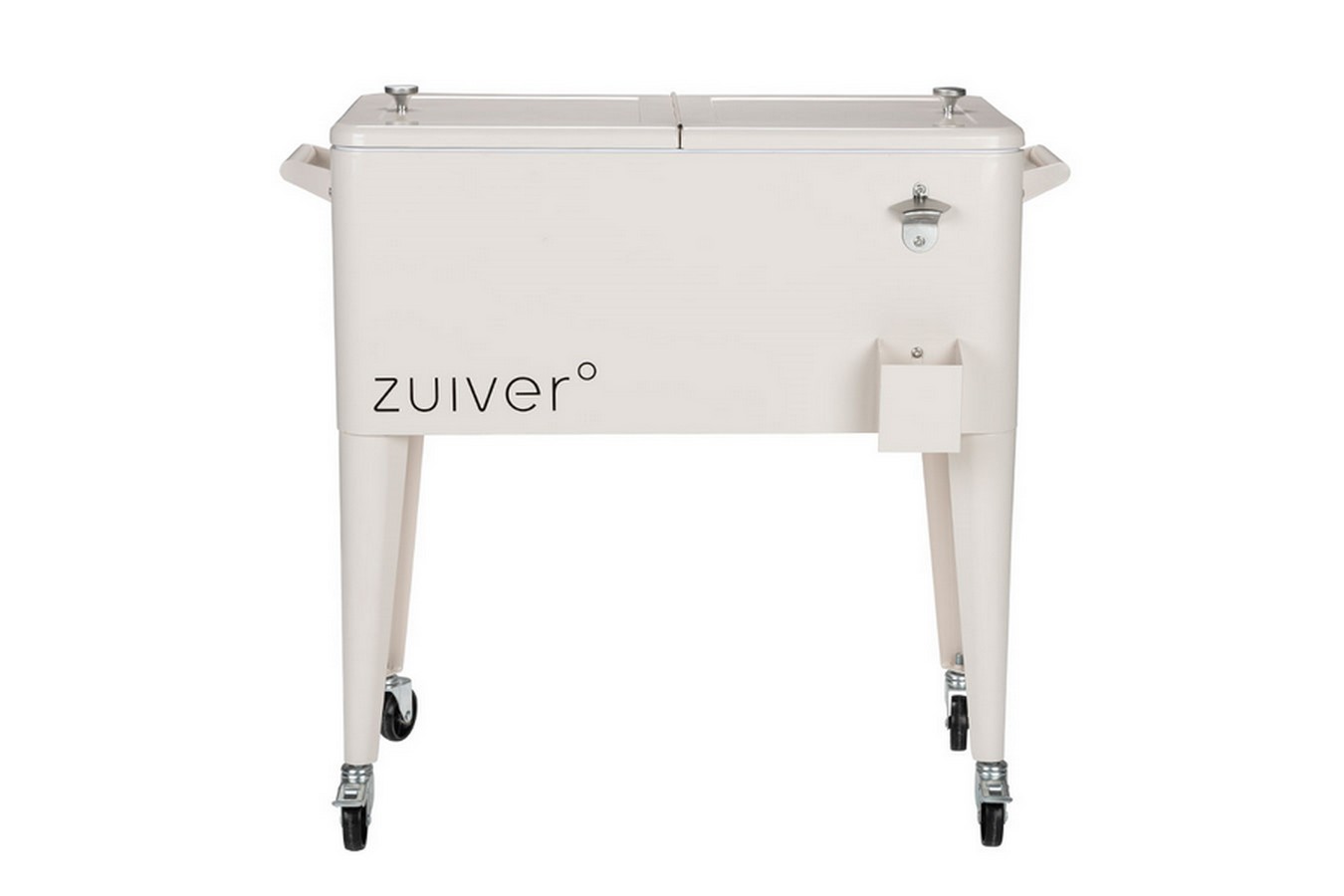 Dank robuster Rollen mit Bremse und praktischer Griffe lässt sich die Kühlbox leicht bewegen. Der integrierte Flaschenöffner sowie ein Auffangbehälter sorgen für zusätzlichen Komfort. Die kratzfeste Pulverbeschichtung in Cremeweiß verleiht ihr einen modernen Look.