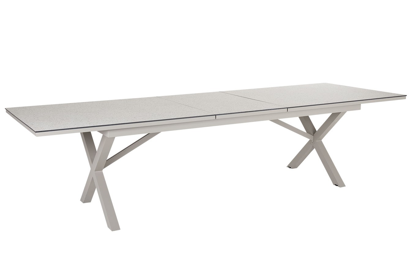 Gartentisch, Tischplatte aus 100% HPL, Gestell 100% Aluminium, khaki pulverbeschichtet, ausziehbar, In- und Outdoorgeeignet