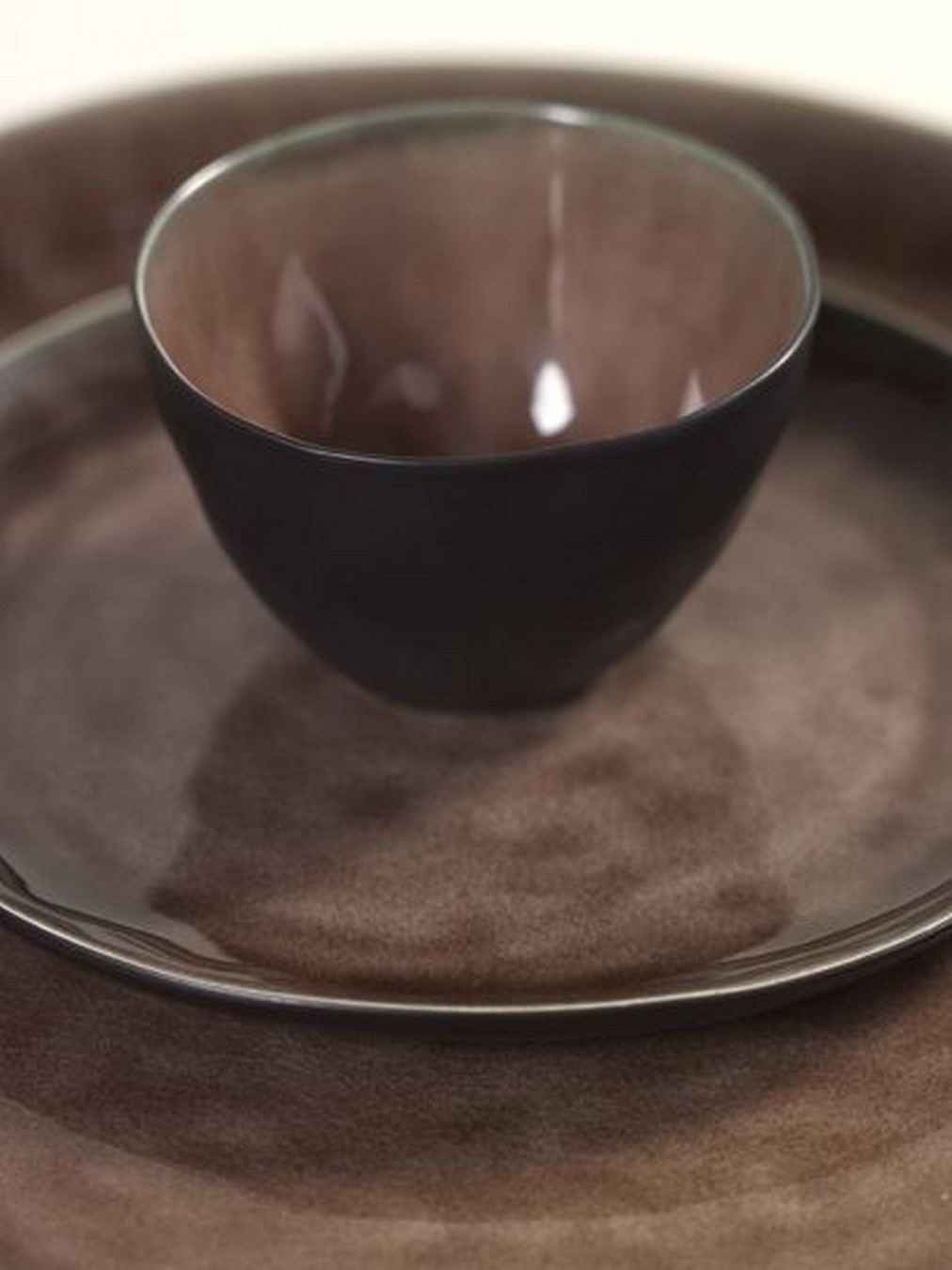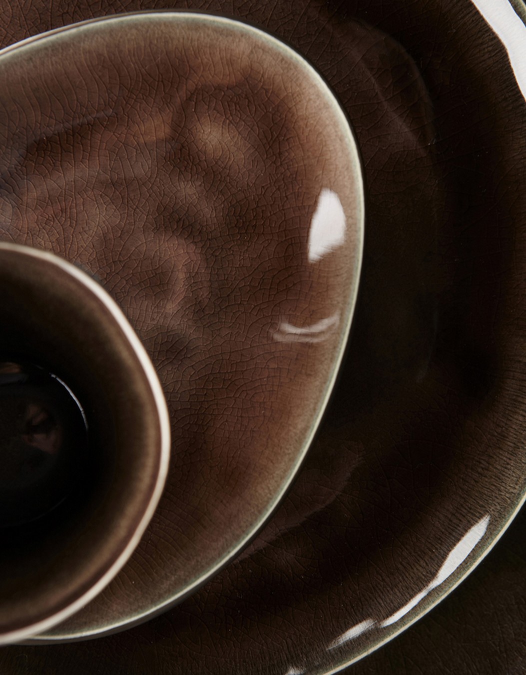 Pascales Service-Linie heißt Pure und zeichnet sich durch die Farben, die organischen Formen und die lebendig wirkenden Glasuren aus. Dieser kleine Teller hat einen Durchmesser von 20cm und eine Höhe von 2cm. Der Speiseteller ist aus braunem Steingut und spülmaschinenfest.