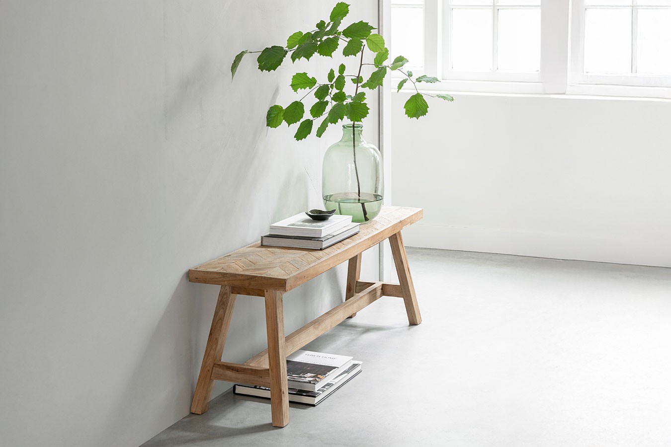 Sitzbank Herringbone recycletes Teakholz B 120 cm