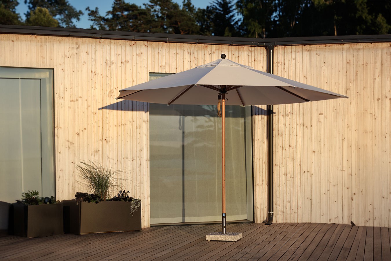 Gartenparasol, 100% Olefin, Ständer aus Aluminium in Holzoptik, ohne Ständer