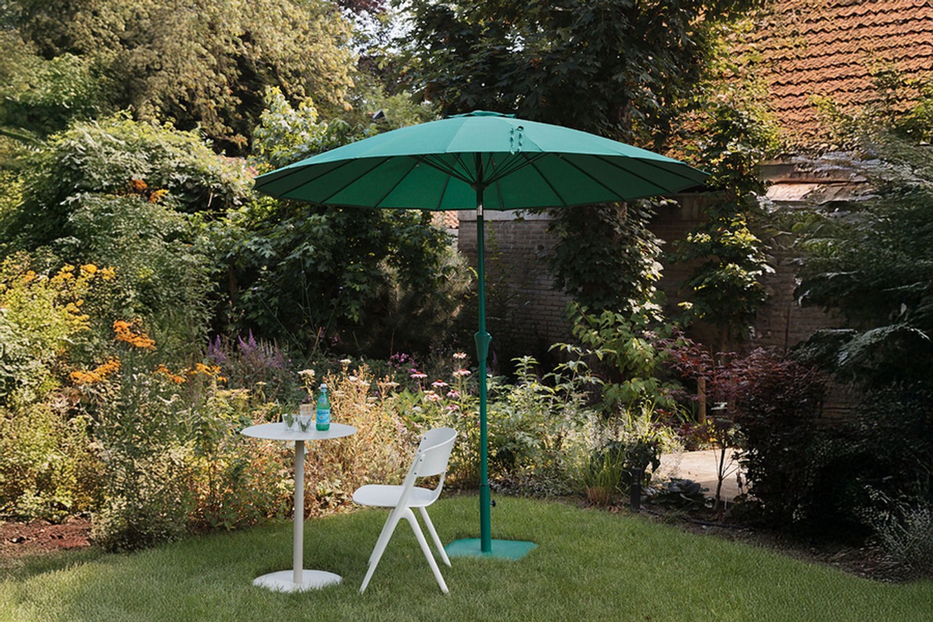 Sonnenschirm in Grün mit Kurbel und Schutzhülle – Modell Sunbrella von Zuiver