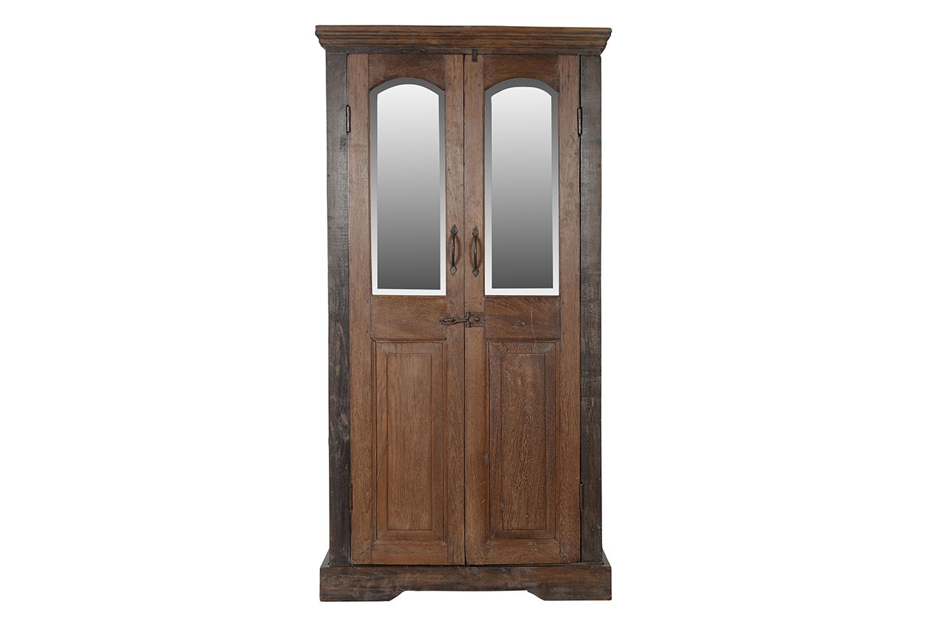 Kleiderschrank, 100% recyceltes Massivholz, braun, Spiegeleinsätze