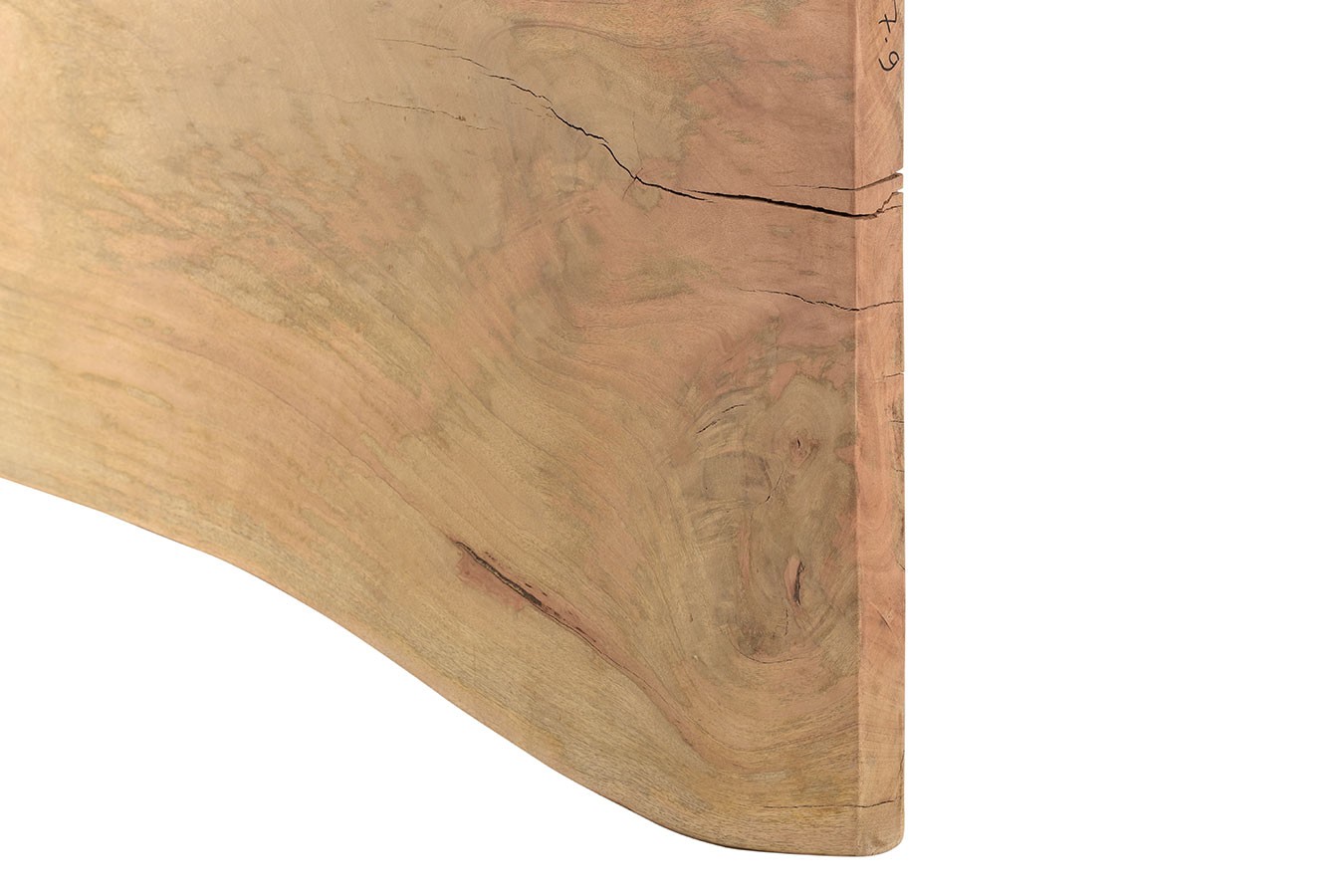 Baumkantenplatte, Mangoholz massiv, Tischkante organisch, Oberfläche natur unbehandelt