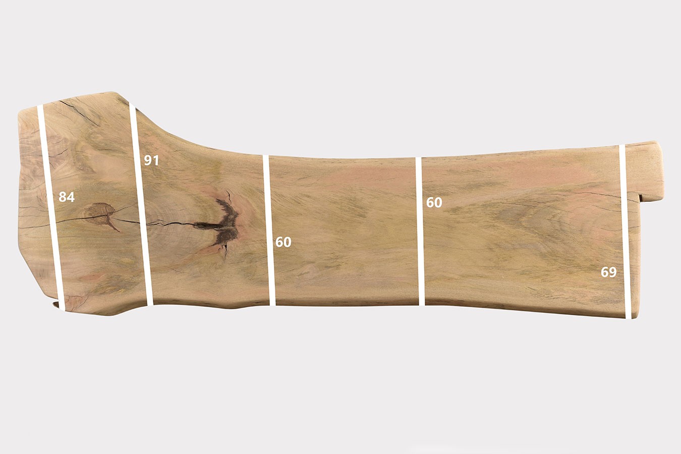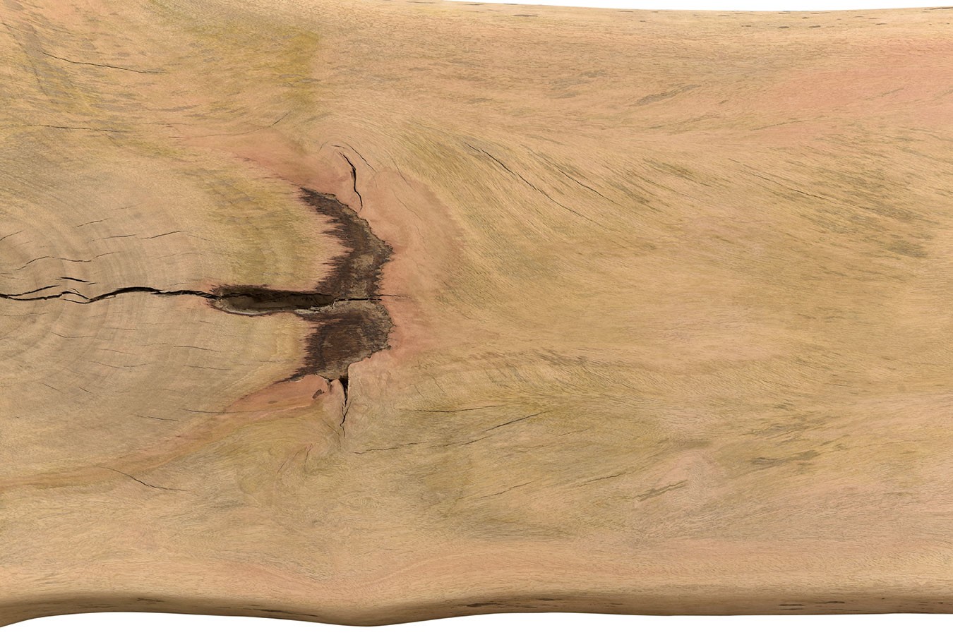 Baumkantenplatte, Mangoholz massiv, Tischkante organisch, Oberfläche natur unbehandelt