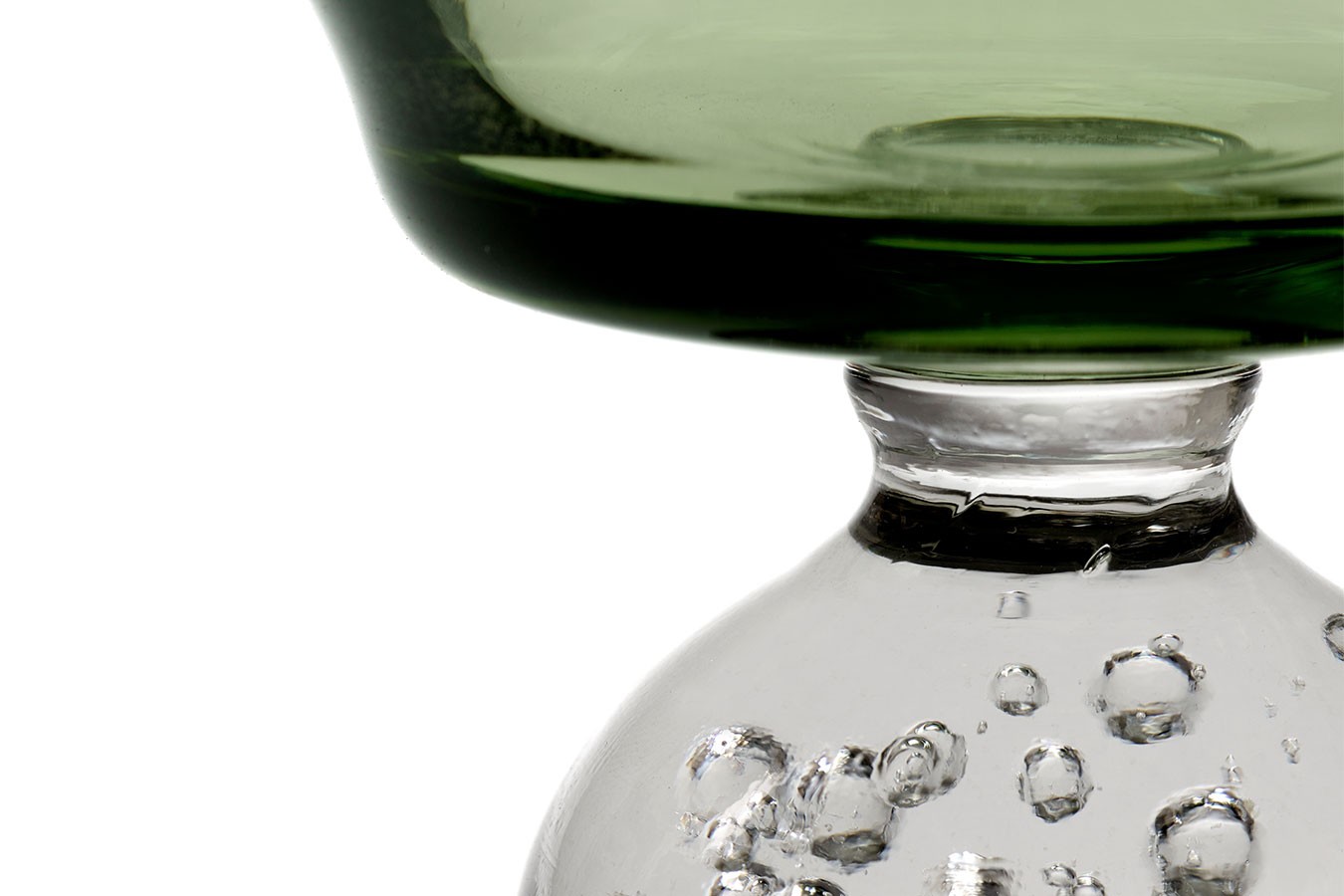 Den Namen hat das Glas zum Trinken nicht von ungefähr und auch seine Form ist besonders: Die Designerin Bela Silva ließ sich von Schneekugeln inspirieren. Jene, die man schütteln musste, um den Schnee rieseln zu sehen. Daher sind in den runden Griff Blasen eingearbeitet, die an jenes Design erinnern.