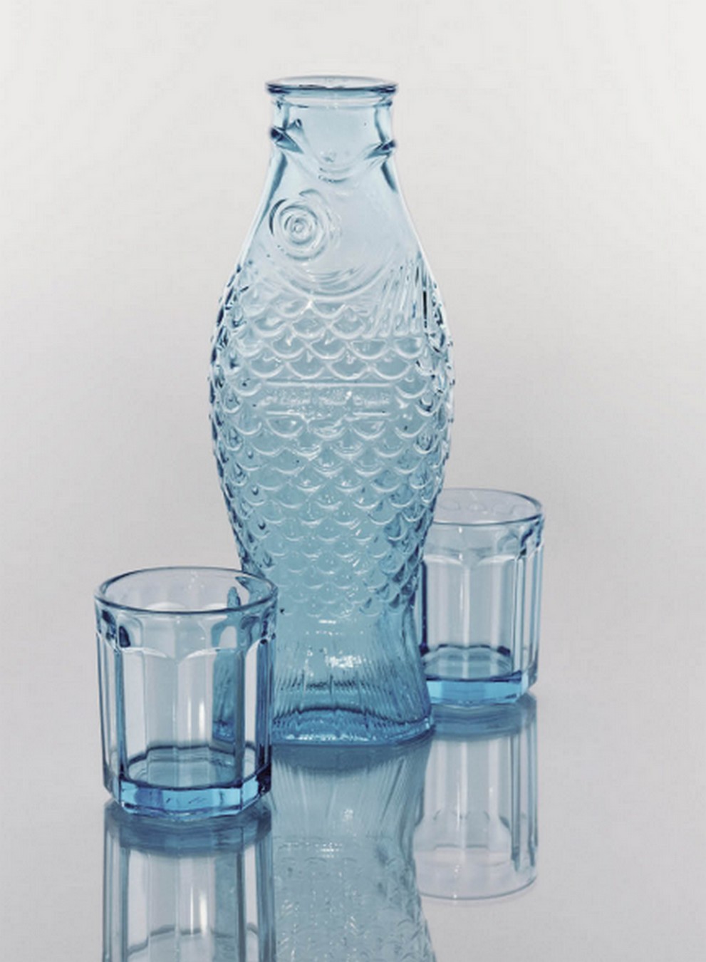 Es ist zwar kein spezielles Whiskey-Glas, aber mit diesem ungewöhnlichen grünen Glas mit Kanten, das an ein Vorratsglas erinnert, lässt sich auch dieses Getränk auf Eis gut schmecken. Mit einem Durchmesser von 7,5cm und einer Höhe von 9cm eignet es sich dafür also hervorragend, so müssen Sie kein höheres Glas schmutzig machen.Hering – der kleine zappelige blaue Fisch aus der Ostsee – ist der Star dieser exklusiven Fish&Fish-Geschirrkollektion, die Paola Navone für Serax entworfen hat. Eine verspielte Kollektion für alle Fischfreunde und die, die es noch werden möchten. Alles in Form dieses gesunden Fisches - was möchte man mehr?