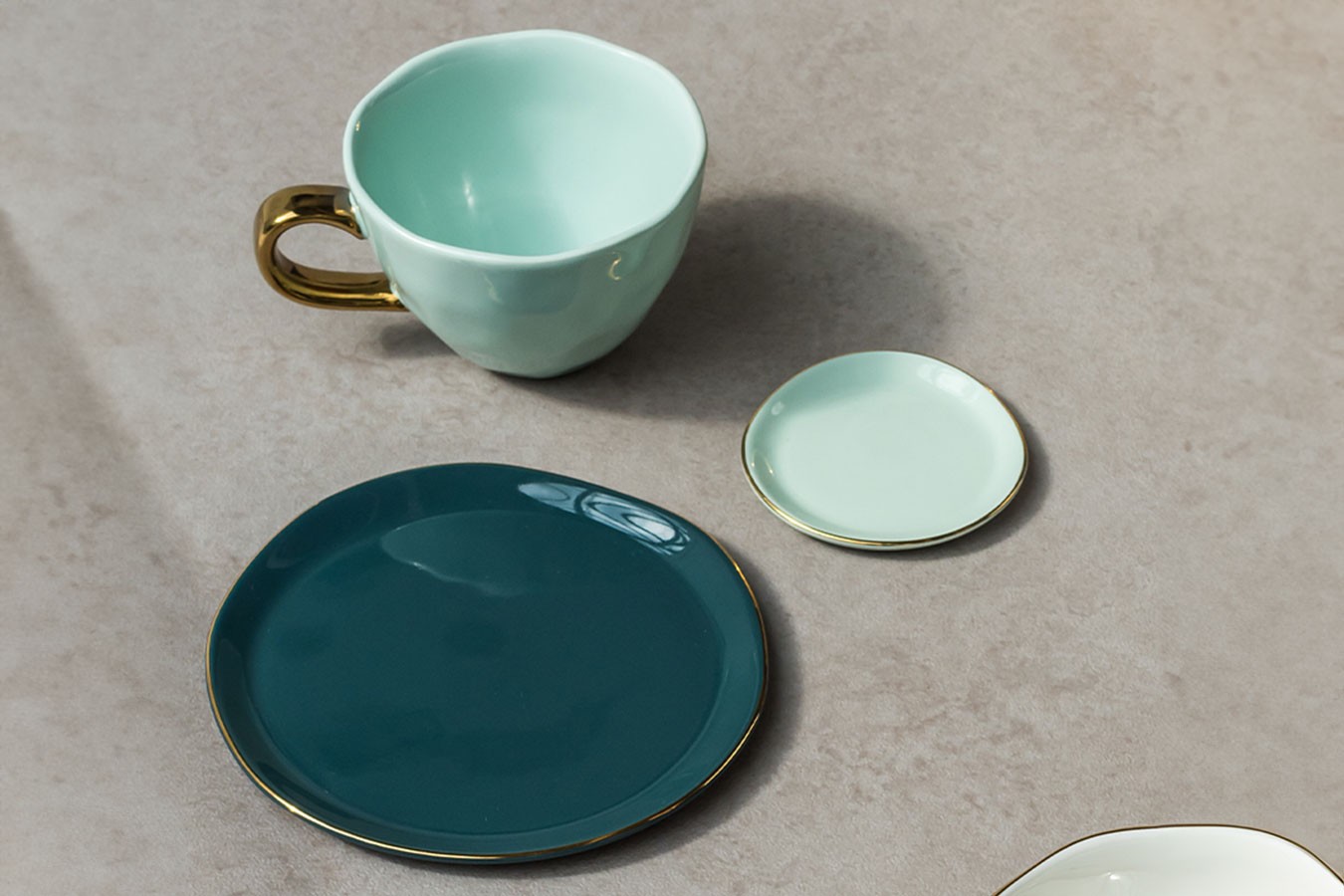 Ergänzen Sie Ihre Tassen mit einem glanzvollen Finish und setzen Sie mit unseren Untertassen aus Porzellan in verschiedenen Farben und goldenem Griff ein Statement für Stil und Qualität. Machen Sie Ihre Kaffeepausen und Teestunden zu einem wahren Genuss für die Sinne.